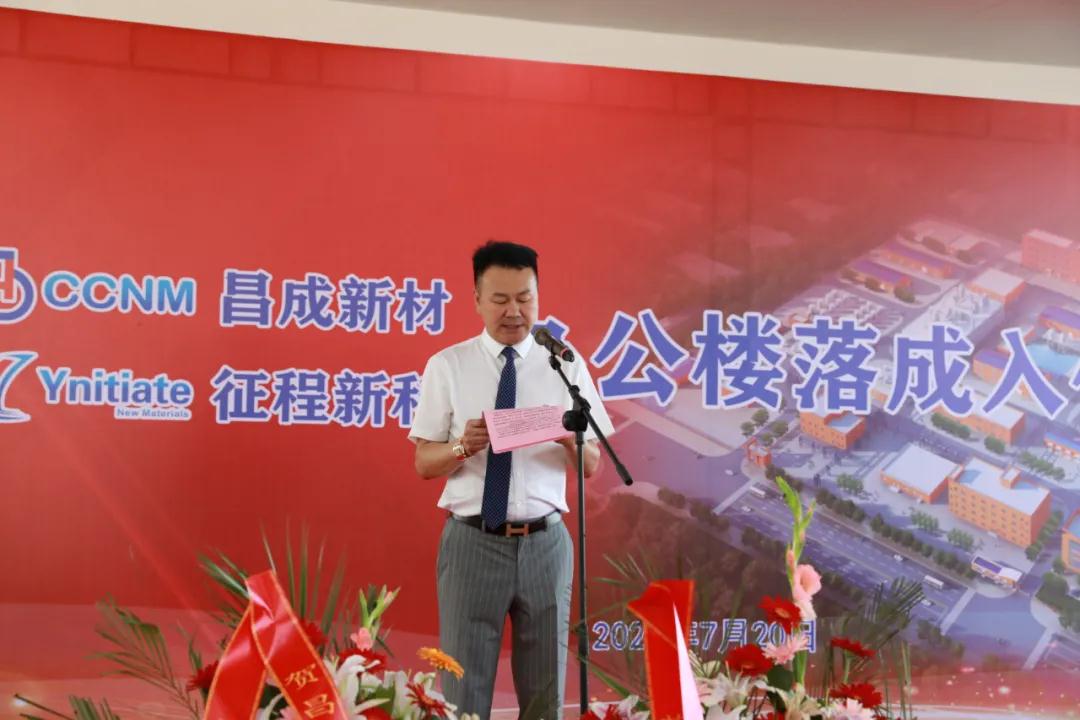 2021年7月20日,昌成新材廠區(qū)外彩旗飄揚(yáng)、彩虹門佇立,新落成的辦公樓前,16個(gè)氫氣球帶著紅色的祝賀彩帶迎風(fēng)飛舞,東門兩側(cè)張貼著鮮紅的對(duì)聯(lián):?jiǎn)⒄鞒汤现星嗪狭潣孙L(fēng)浪,誓昌成你我他同心揮毫繪江山,橫批:吉星高照,一樓員工食堂大廳人聲鼎沸、紅毯鋪地、綠植盎然,歡快的音樂縈繞四壁。昌成新材和征程新科辦公樓落成入住典禮將在這里隆重舉行。